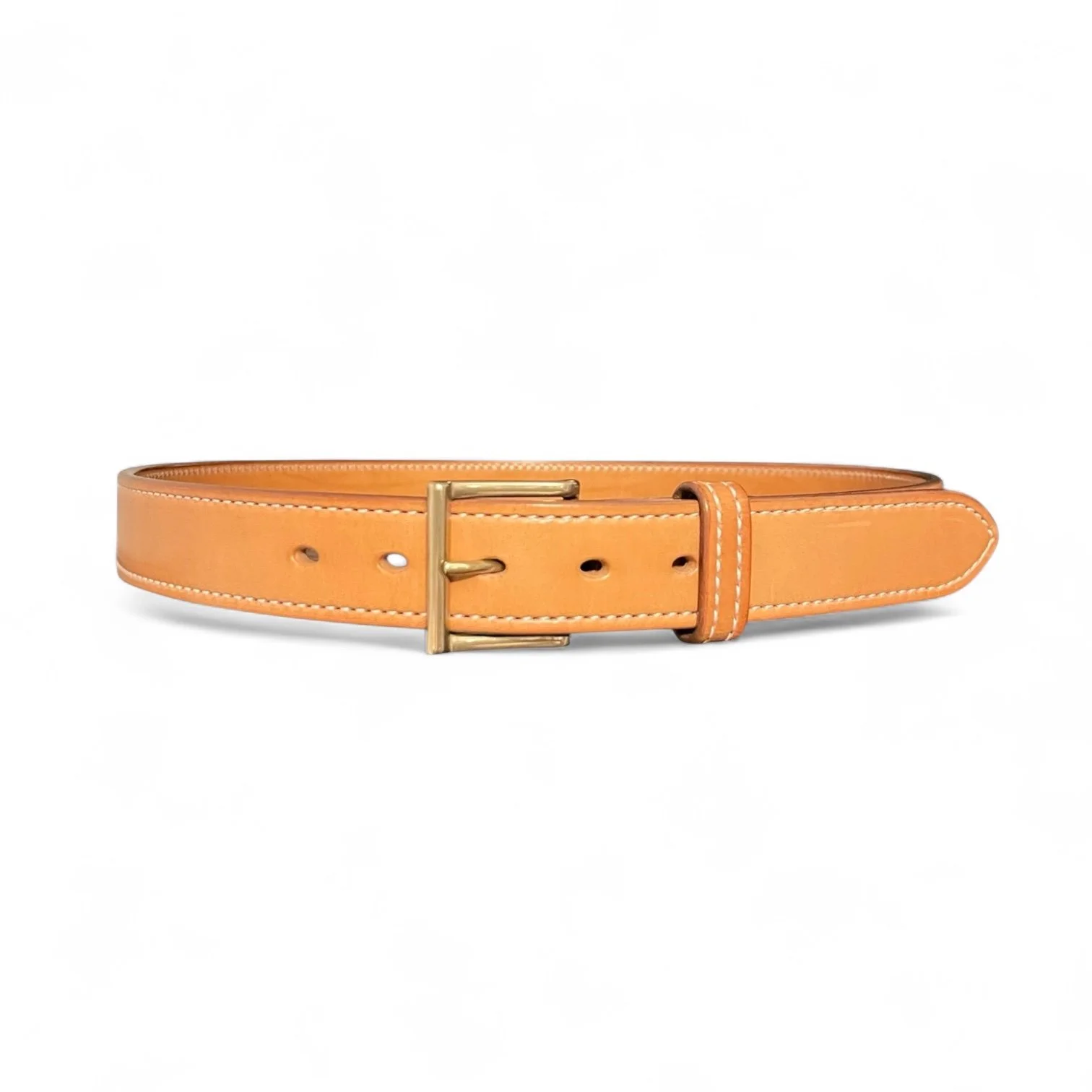 The two layers are then laminated together and then edge stitched using heavy duty nylon thread resulting in a belt strap that is far superior in strength in comparison to a single layer belt.